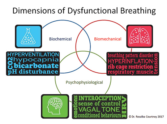In this consultation we will attempt to determine what elements of health are most influential in your situation. Integrative breathing therapy has divided dimensions of dysfunctional breathing in to 3 categories; biomechanical, biochemical and psychophysiological. The relative contributions of these categories will influence the course of your treatment.